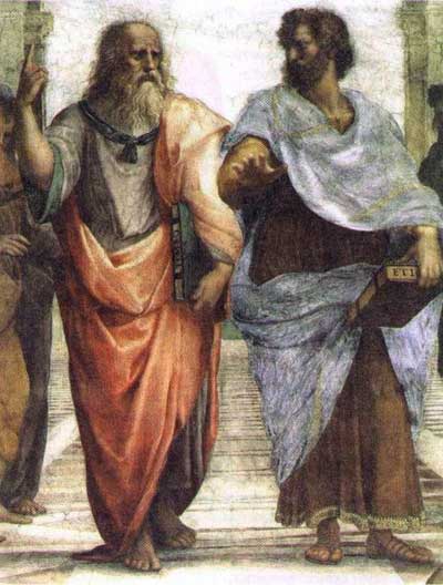 Платон и Аристотель. Фрагмент фрески Рафаэля «Афинская школа» в Папском дворце Ватикана. 1509—11 гг.